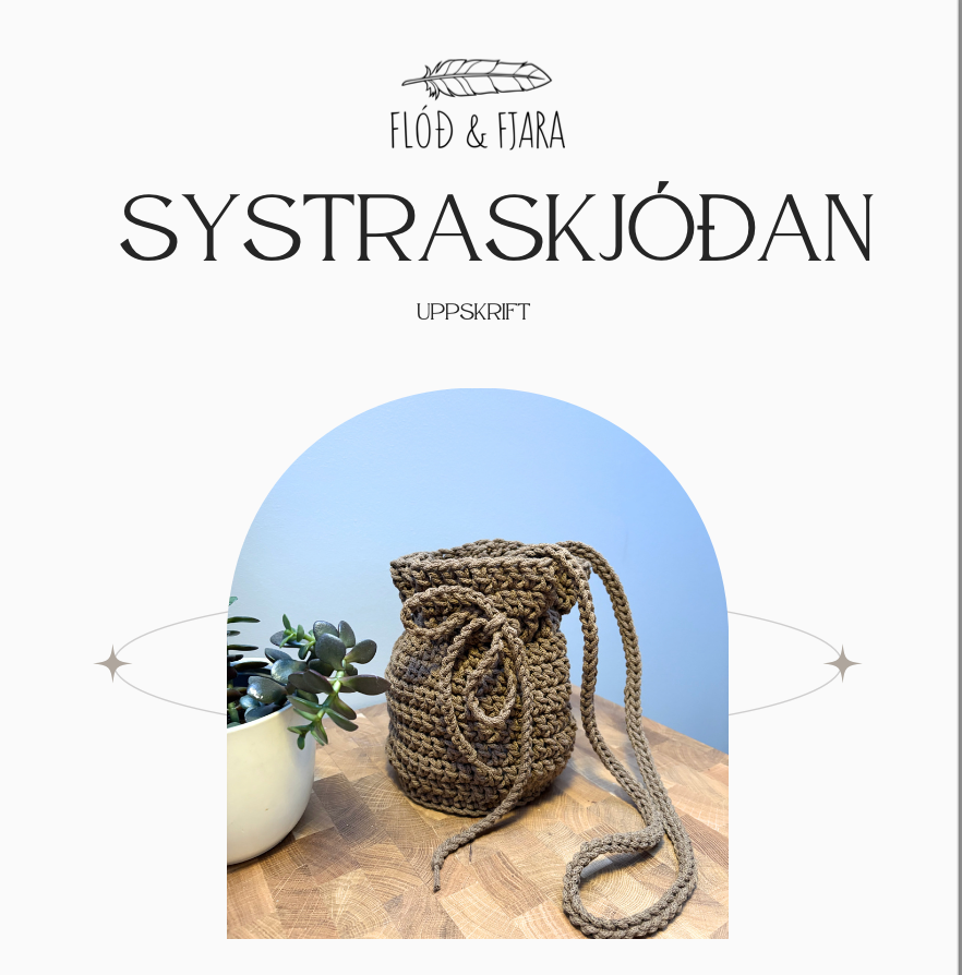Systraskjóðan er hekluð hliðartaska fyrir þínar daglegu nauðsynjar eða til að poppa upp dressið þegar þú ferð í veislu. Skjóðan er góð yfir öxlina eða hægt að skella henni þvert yfir líkamann eins og góðum hliðarpung. Hugmyndin að systraskjóðunni varð til á Prjónagleðinni á Blönduósi árið 2025 þegar Lára systir Heru í Flóð & fjöru óskaði eftir að geta gert tösku sem þessa. Þá fórum við systur á hugarflug, sóttum okkur heklunál og garn og hófumst handa.