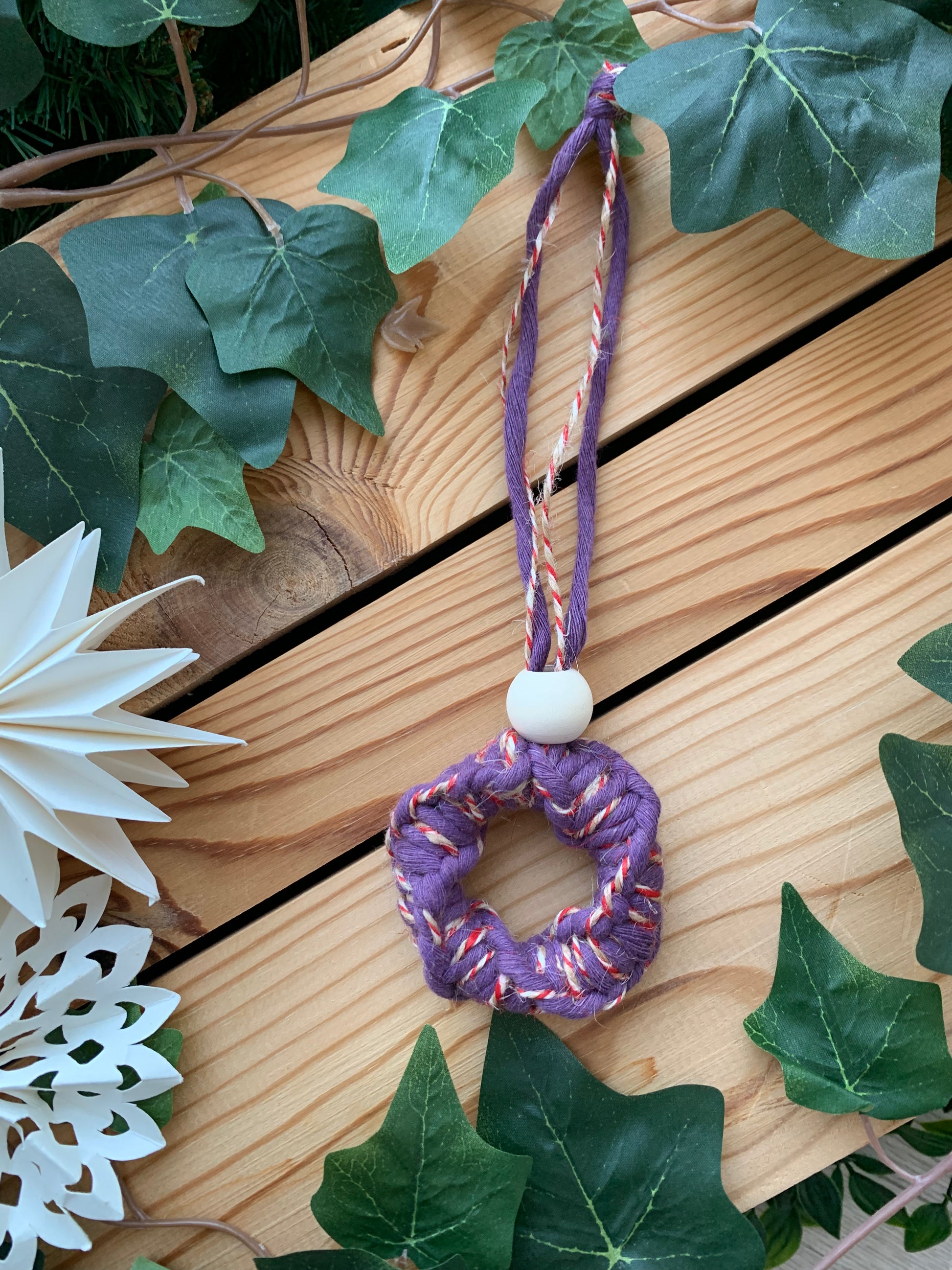 Litir: Violet og tvílitur jólaþráður með viðarkúlu
