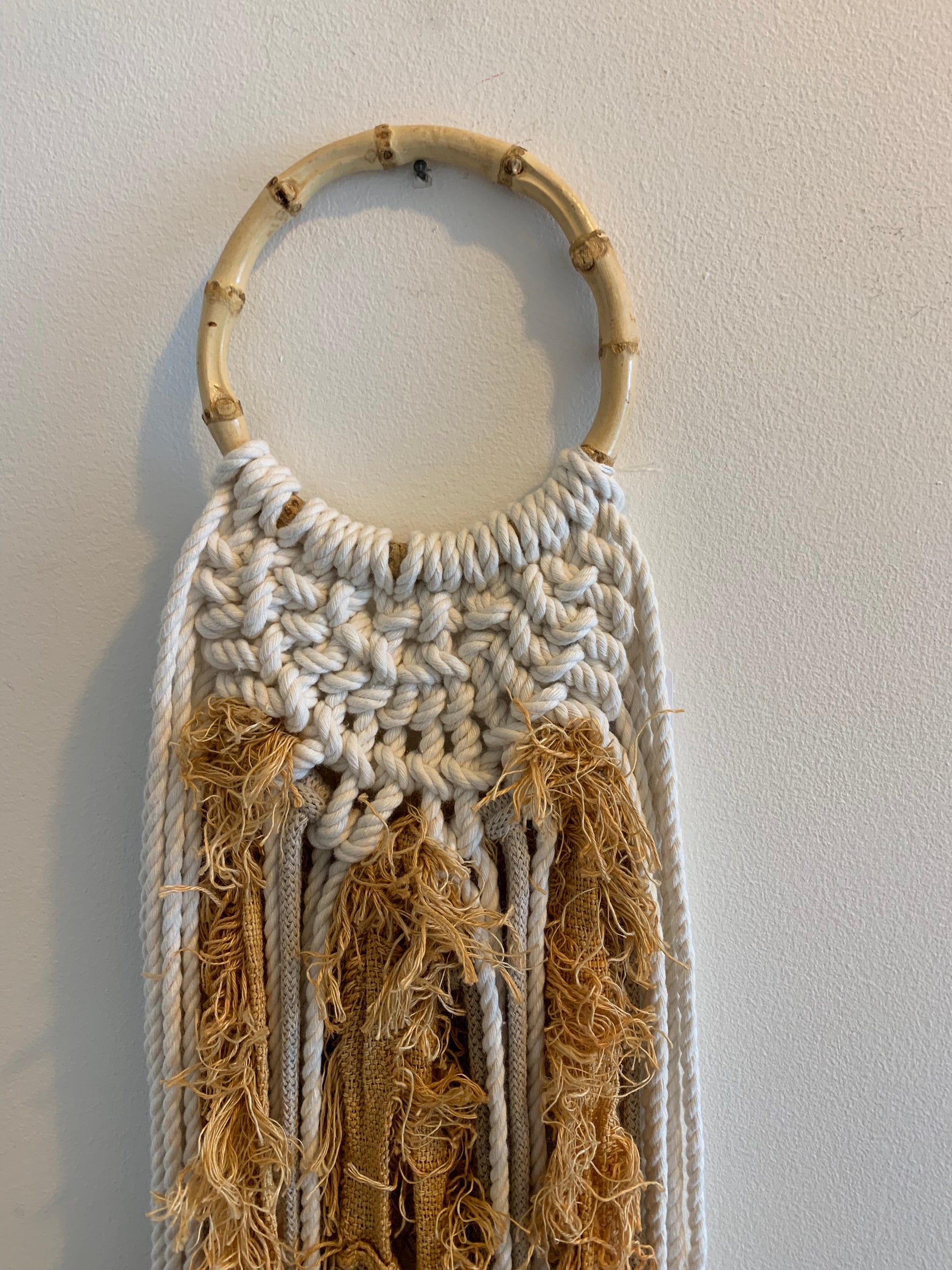 Bambushringur og blandað efni (natural, beige og gult)